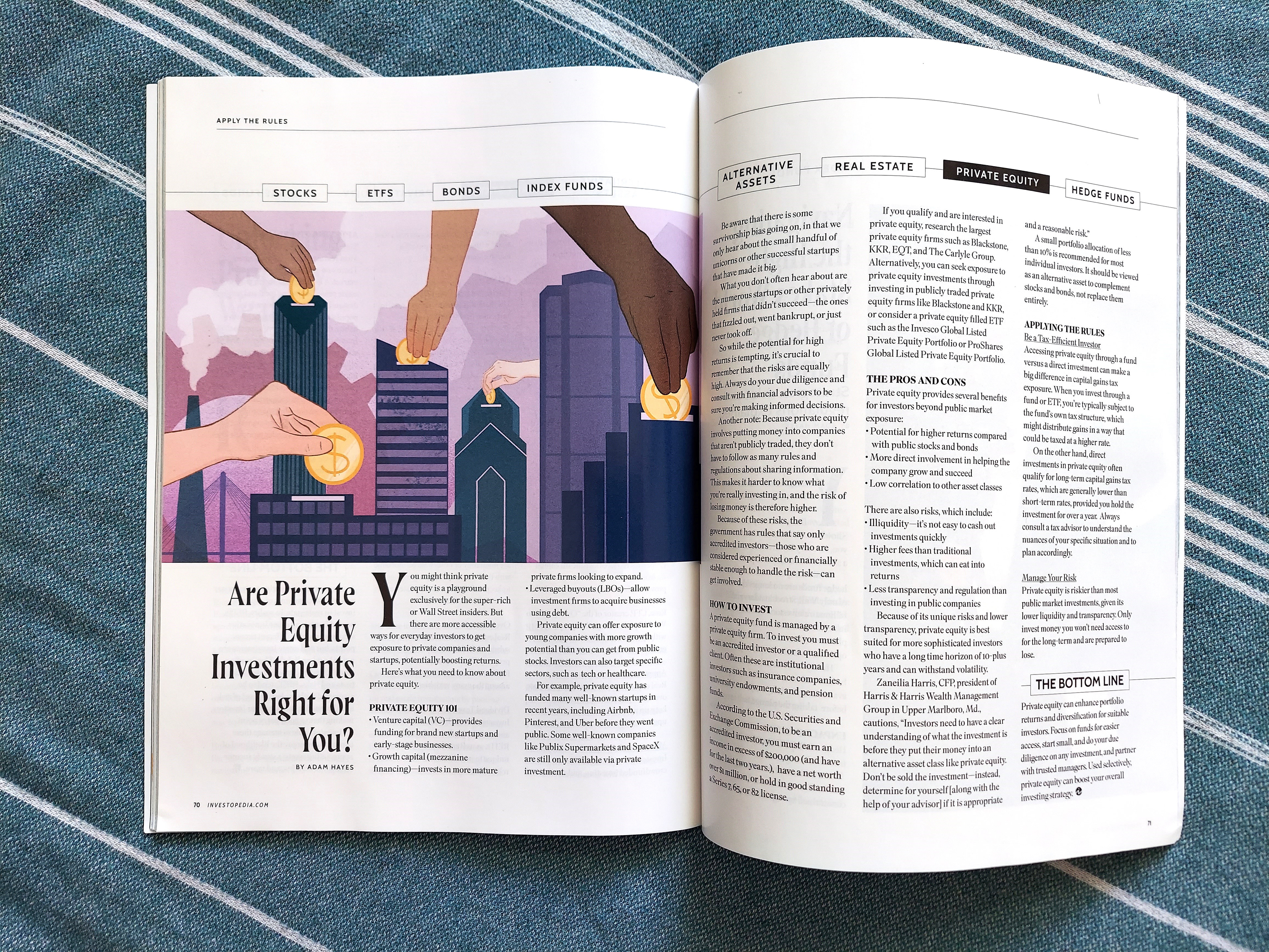 Illustration for the Investopedia print magazine for an article about investing in private equity.